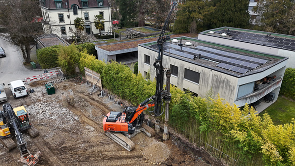 Die Aushubarbeiten mit Baugrubensicherung sind in Arbeit. Bald startet der Baumeister.